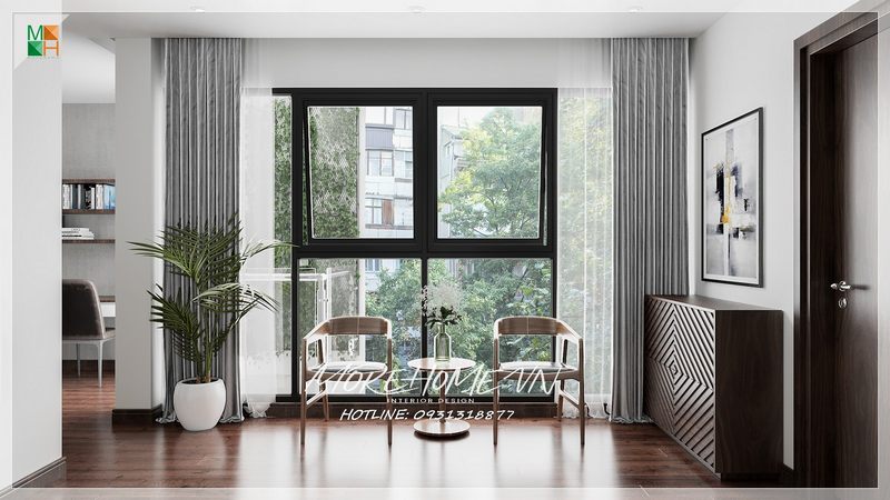 Vách kính được sử dụng triệt để tạo nên sự thông thoáng, đầy ánh sáng cho phòng khách của biệt thự, nhà phố