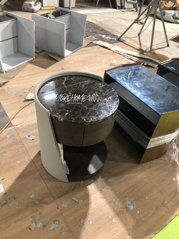 Mẫu tab đầu giường cho phòng ngủ với thiết kế lạ mắt màu đen phong cách hiện đại, kết hợp từ gỗ tự nhiên và mặt đá marble cao cấp