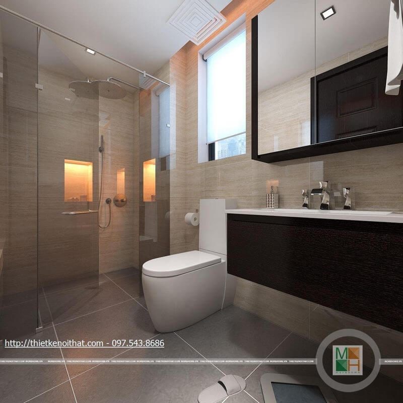 Mẫu tủ lavabo gỗ công nghiệp được kết hợp với đá ốp mặt lavabo cao cấp màu trắng.